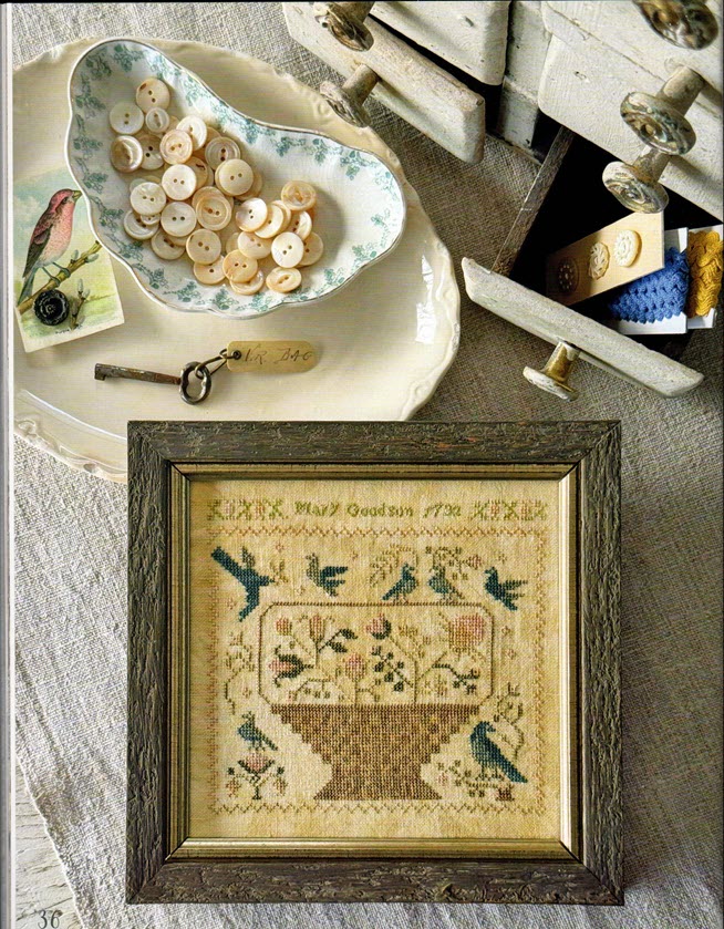- The large sampler pictured on the back cover was stitched on 36ct Heartland linen by Picture This Plus and uses GA Burnt Orange instead of the Valdani Rusted Orange and WDW Cinnabar instead of Valdani Nantucket Rose.